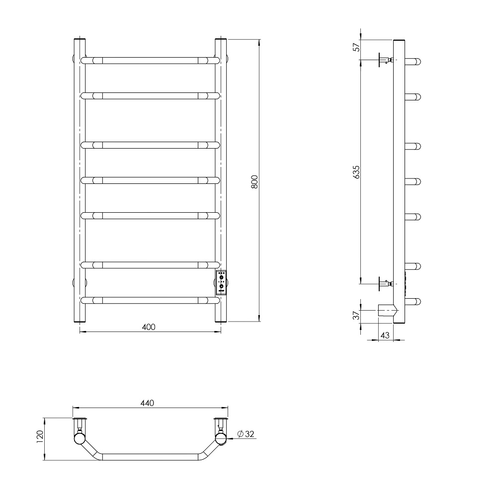 Для удобства ПЭК оснащен универсальным подключением. Полотенцесушитель можно подключить к сети питания, как справа, так и слева при помощи шнура с вилкой длиной 70 см и скрытым способом напрямую к проводке, заложенной в инженерную систему дома без использования штатного кабеля. Скрытый монтаж к электропитанию осуществляется через распаячные коробки, установленные справа и слева на коллекторе полотенцесушителя.